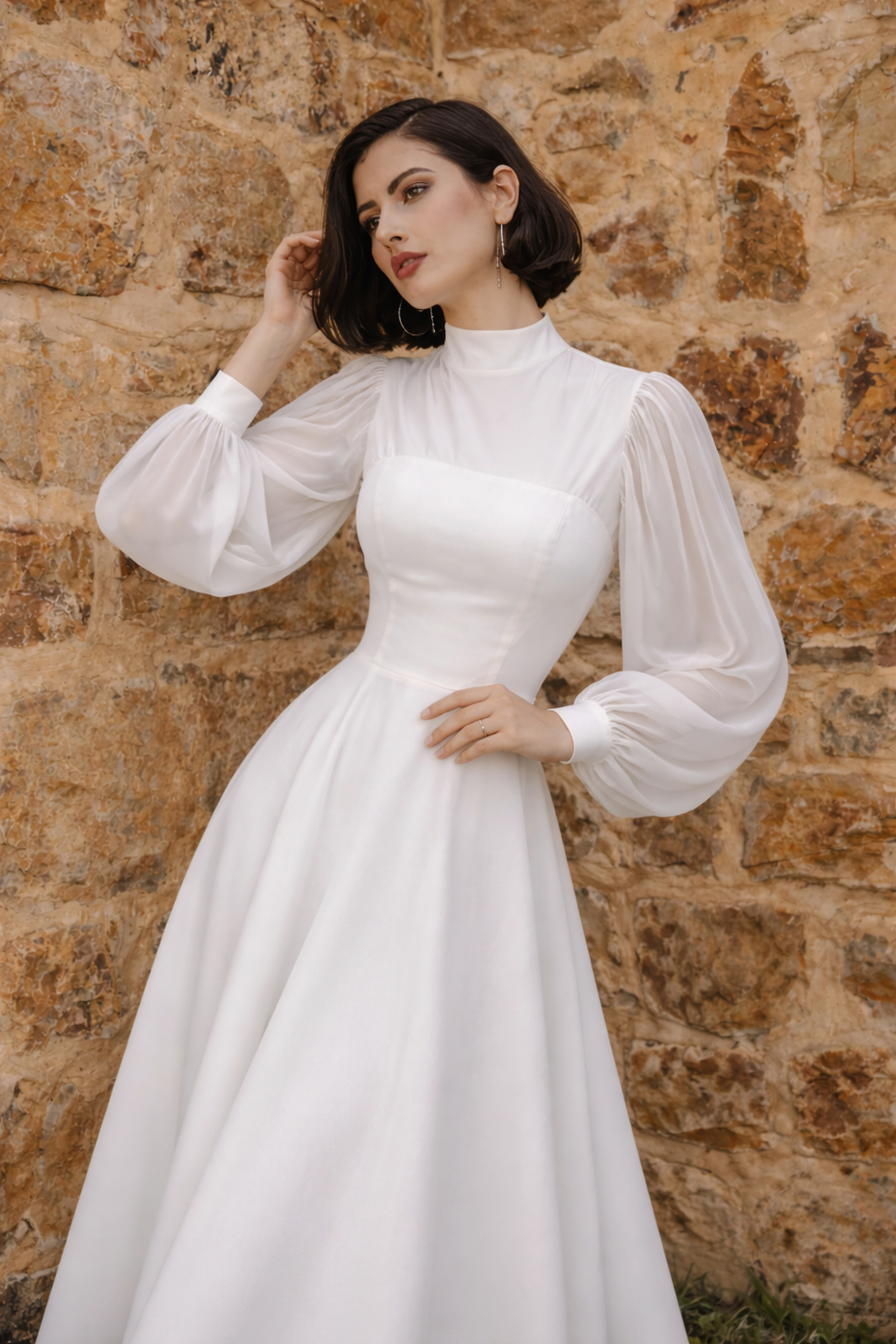 When you have a large bust, the secret is to choose a dress that provides balance, support, and elegance. V-neck or wrap necklines are perfect for visually elongating the silhouette while highlighting the upper bust with finesse. Prioritize cuts fitted under the bust, like empire waists or slightly cinched dresses, which beautifully shape the forms without compressing. Elegance lies in the precision of the drape and the sobriety of the detail.